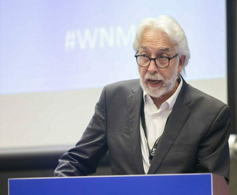 | 리차드 진그러스 구글 뉴스 부사장이 제74차 세계뉴스총회에서 기조발언을 하고 있다. <세계신문협회 제공> |