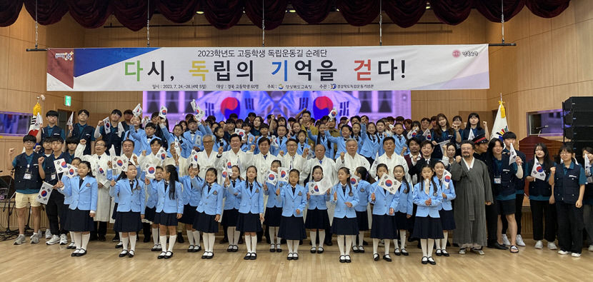 경북도교육청이 25일 경북독립운동기념관에서 '고등학생 국내 독립운동길 순례단' 출정식을 열었다. 순례단은 오는 28일까지 경북 독립운동가의 발자취를 직접 답사하며 나라사랑 정신과 평화·통일 의식을 함양하게 된다. 도교육청은 경북독립운동기념관과 공동으로 이번 행사를 마련했다. 앞서 도교육청은 공모를 통해 국가유공자 후손, 나라사랑 동아리 회원, 그리고 역사에 관심 많고 나라사랑 정신을 실천할 의지가 있는 고교생 등 순례에 참가할 총 60명을 선발했다.