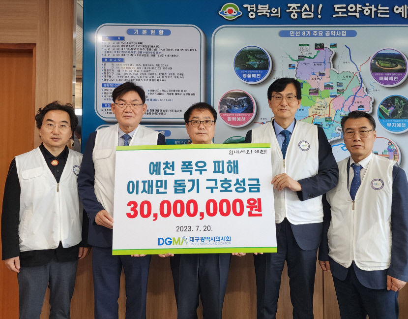 대구시의사회(회장 정홍수)는 수해로 어려움을 겪고 있는 피해주민을 위해 성금 3천만 원을 기탁하고 향후 피해지역 주민을 대상으로 의료 봉사 활동 지원을 약속했다.