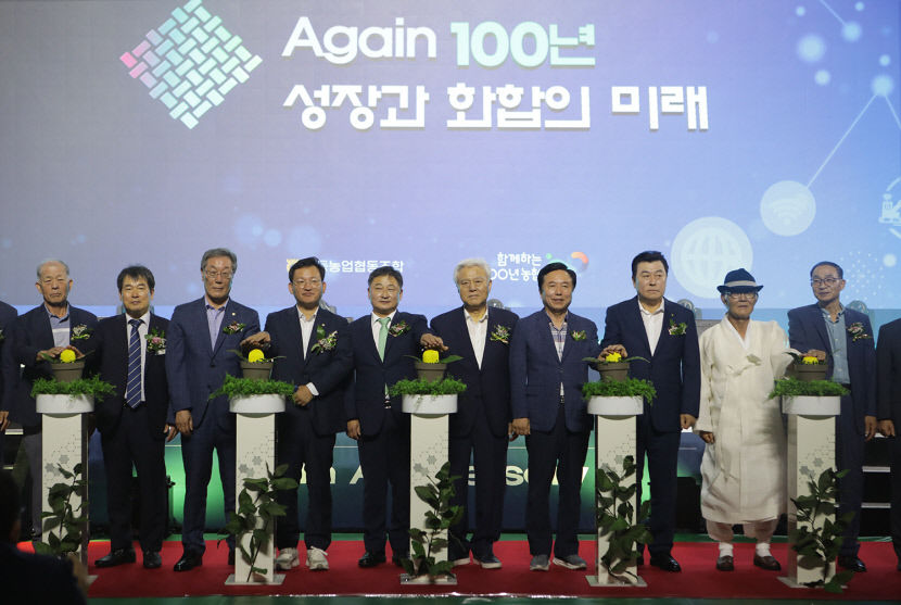 경북 안동농협이 지난 12일 안동체육관에서 창립 50주년 기념행사를 개최했다. 임직원과 조합원 등 5천여 명의 참석자는 안동농협의 지난 50년 역사를 돌아보며 기념했다. 'Again 100년-성장과 화합의 미래'라는 주제로 열린 이날 기념행사는 식전행사, 1부 기념식, 2부 문화행사로 진행됐다. 1부는 공로패 수여, 기념사, 테마영상 상영, 미래 100년을 위한 경영방침 선포 및 퍼포먼스 등이 이어졌고, 2부는 전영록·김연자 등 초청 가수 축하공연이 펼쳐졌다.