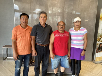 | 김재경(왼쪽에서 두번째) 매니토바주 위니펙 한인회장과 운영진들이 기념 촬영을 하고 있다. 오주석 기자 |