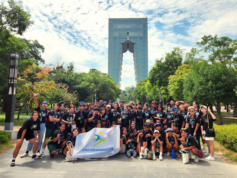 | 지난 15일 경주엑스포대공원을 찾은 대만 잼버리 대원들이 경주타워를 배경으로 기념촬영을 하고 있다. <경주시 제공> |