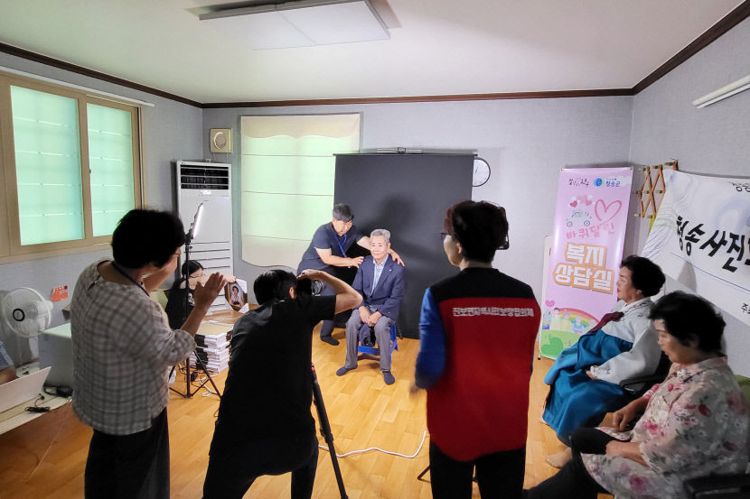 경북 청송군 진보면지역사회보장협의체(회장 윤도석)가 운영하는 '바뀌달린 복지상담실'이 추진하는 장수사진 촬영이 큰 호응을 얻고 있다.