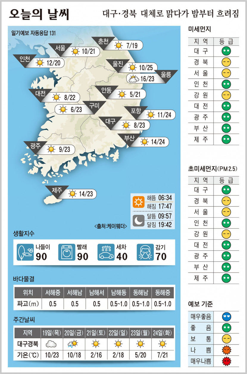 카카오톡 페이스북 트위터 전체 네이버밴드 네이버블로그 대구·경북 대체로 맑다가 밤부터 흐려짐 대구·경북 오늘의 날씨 (10월 18일)…낮최고기온 대구·구미 23, 포항 24, 안동 21도 사회부 기사 전체보기 영남일보(www.yeongnam.com), 무단전재 및 수집, 재배포금지 사회인기뉴스 ‘전두환 손자’ 전우원, 가족사·폭력·왕따까지 웹툰으로 폭로[대경선 개통 1년] <하> 500만명 이용한 대구권 광역철도 대경선, 확장 앞 대전환 기로 섰다