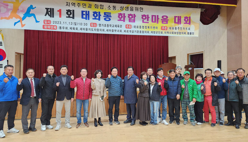 경북 안동 태화동 행정복지센터와 태화동 주민자치회(회장 조달흠)가 지난 12일 영가초등 서경관(체육관)에서 제1회 태화동 화합 한마음 대회를 개최했다.