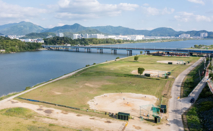 경북 구미시는 구미대교 아래 낙동강변에 전국대회가 가능한 공인 인조 잔디 야구장 4면을 조성한다. 이달에 착공해 내년 4월 준공 목표다.