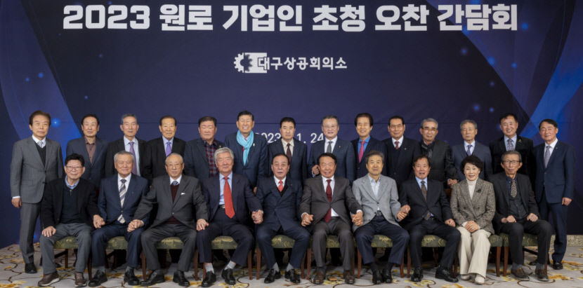 이날 호텔인터불고 대구에선 '2023년 원로 기업인 초청 오찬 간담회'가 열렸다. 내년 경제상황도 올해 처럼 매우 어려울 것으로 전망되자, 수십 년간 기업체를 경영하며 높은 식견과 경륜을 가진 이들 원로 기업인들의 의견을 직접 청취하기 위한 자리다. 차부품, 건설, 기계 금속, 섬유업을 이끌며 지역 일자리 창출과 수출 등에 기여해 온 선배 CEO를 예우하는 성격도 띠고 있다.