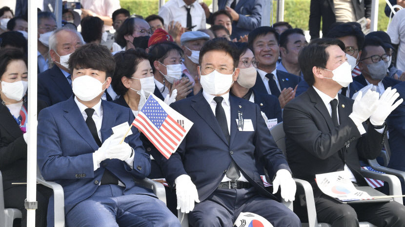 | 국민의힘 이준석 대표(앞줄 왼쪽)와 안철수 의원(앞줄 오른쪽)이 지난해 경북 칠곡군 다부동전적기념관에서 열린 '6.25전쟁 72주년 기념 백선엽장군 2주기 추모행사'에 참석해 다른 곳을 응시하고 있다. 영남일보 DB |