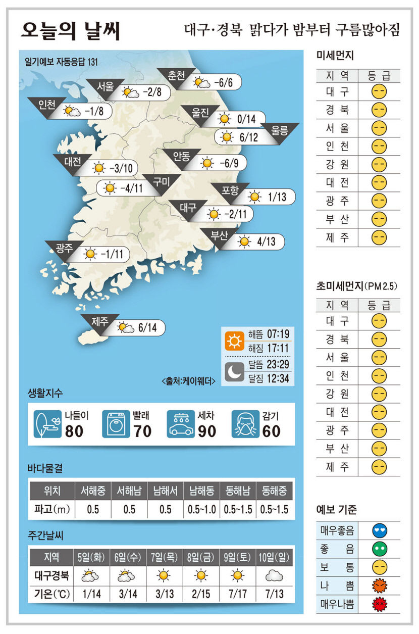 카카오톡 페이스북 트위터 전체 네이버밴드 네이버블로그 대구·경북 맑다가 밤부터 구름많아짐 대구·경북 오늘의 날씨 (12월 4일)…낮최고기온 대구·구미 11, 포항 13, 안동 9도 사회부 기사 전체보기 영남일보(www.yeongnam.com), 무단전재 및 수집, 재배포금지 사회인기뉴스 ‘전두환 손자’ 전우원, 가족사·폭력·왕따까지 웹툰으로 폭로[대경선 개통 1년] <하> 500만명 이용한 대구권 광역철도 대경선, 확장 앞 대전환 기로 섰다