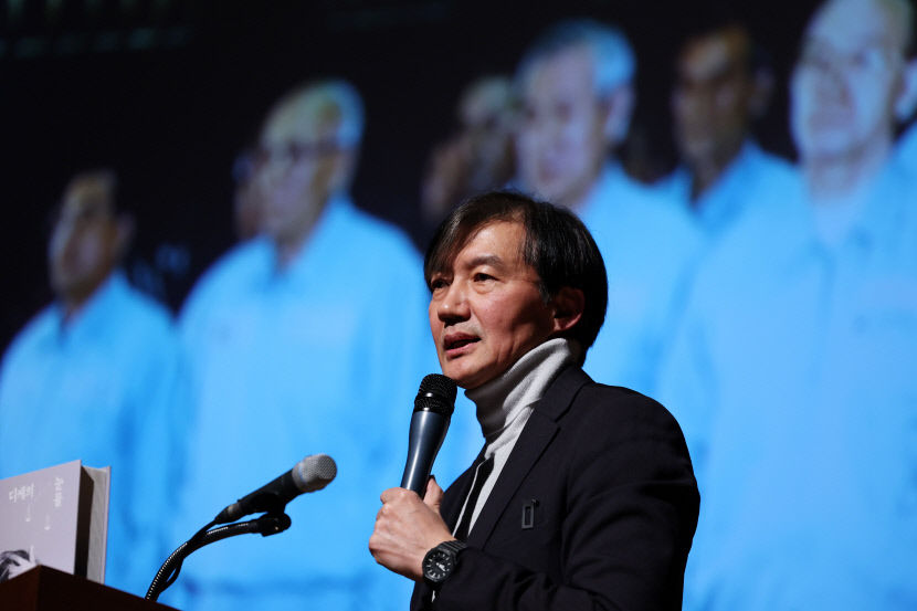 16일 조 전 장관은 서울 건국대에서 진행된 박성오 검찰독재정치탄압대책위원회 기획위원장의 출판기념회에 참석해 향후 행보 관련 질문에 답변했다.