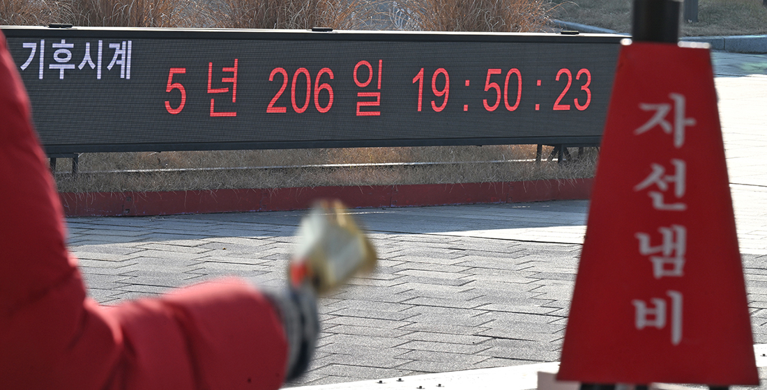 더 심해진 집중호우와 폭염, 유난히 따뜻한 겨울 날씨 등 이상기후를 경험한 한 해였다. 동대구역 앞에 설치된 기후 시계(전 세계 이산화탄소 배출량을 기반으로 지구의 평균 온도가 산업화 이전보다 1.5℃ 높아지는 시점까지 남은 시간을 보여주는 시계)는 빠르게 흐르고 있다. 연말 구세군 자선냄비 앞에서 사관이 흔드는 종소리가 어려운 이웃에게 힘이 되듯 지구에도 따뜻한 시선이 필요한 때이다. 이지용기자 sajahu@yeongnam.com