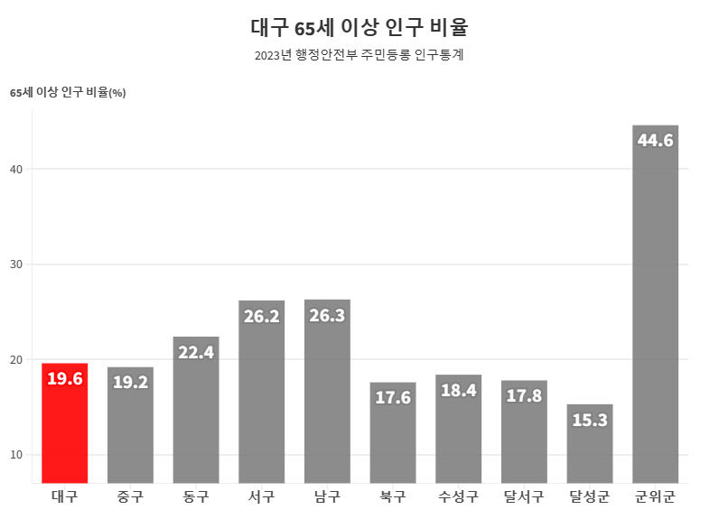 | 대구시와 9개 구·군의 65세 이상 인구 비율. 행정안전부 제공. |