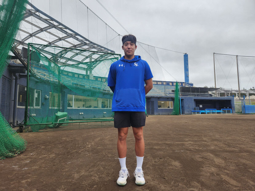 | 일본 오키나와 온나손의 아카마구장에서 만난 삼성 라이온즈 원태인. |