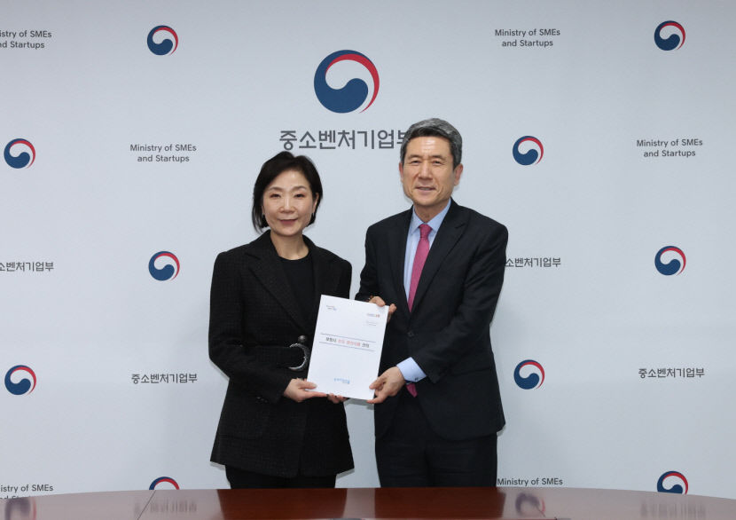 | 이강덕(사진 오른쪽) 포항시장이 지난 5일 중소기업기술정보진흥원에서 오영주 중소벤처기업부 장관을 만나 글로벌 혁신특구 공모에 포항시가 반드시 선정될 수 있도록 적극 건의한 후 기념사진을 촬영하고 있다.<포항시 제공>. |
