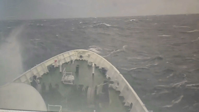 사고 현장은 현재 12~14m/s의 바람과 4~5m 높은 파도가 일고 있다.