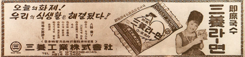 | 삼양식품 초기 광고. 창업주인 전중윤 회장은 국내 식량 문제 해결이 시급하다 생각해 라면을 출시했다. <삼양식품 제공> |