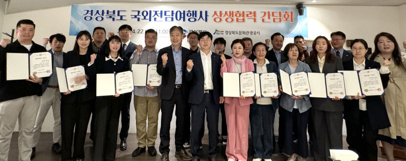 도와 경북문화관광공사는 22일 서울 콘퍼런스 하우스 달개비에서 '경북 국외 전담여행사 상생협력 간담회'를 갖고 경북 관광 활성화 방안에 대해 논의했다. 이 자리에는 공모로 선정된 국외 전담여행사 16개 사 대표와 경북도·경북문화관광공사 임직원 등이 참석했다.