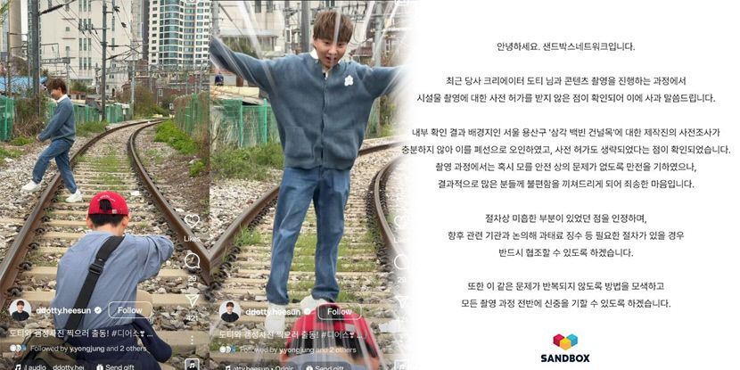 이어 "제작진의 사전 조사가 충분하지 않아 폐선으로 오인했고 사전 허가도 생략된 점이 확인됐다"며 "절차상 미흡한 부분이 있었던 점을 인정한다. 같은 문제가 반복되지 않도록 방법을 모색해 촬영 과정 전반에 신중을 기하겠다"고 했다.