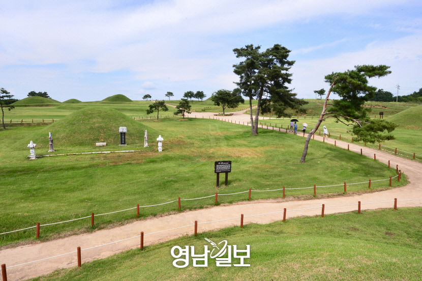 | 크고 작은 고분 374개 정도가 자리하고 있는 의성금성면고분군 내 경덕왕릉. 고분들은 4세기 후반에서 6세기 중반에 조성된 것으로 추정되는데 주인공이 확인된 고분은 1호 고분인 경덕왕릉 하나뿐이다. |
