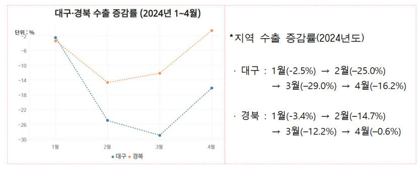 한기영 한국무역협회 대경본부 차장은 "올 상반기는 글로벌 전기차 시장의 캐즘(Chasm·일시적 정체) 현상으로 지역의 주력 수출상품인 2차전지 소재의 수출 회복이 더딜 것으로 보인다"며 "다른 수출 품목들이 이를 상쇄할 만큼 호조세를 보이고 있어 전체 수출 상황은 조만간 개선될 것"이라고 전망했다.