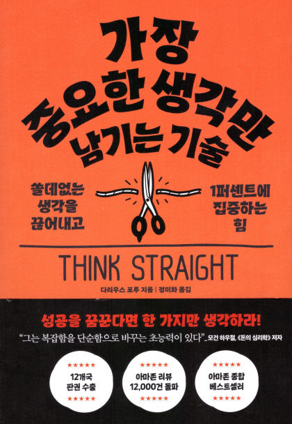 꼭 알아두어야 할 불변의 사고법을 엄선했다. "추측, 의견은 버리고 팩트에만 주목하라" "빈약한 확신 따위로 올인하지 마라" "미래나 과거가 아닌, 현재에 90% 에너지를 쏟아라" 등 어떠한 상황에서도 '가장 중요한 생각'만 남길 수 있도록 독자들을 안내한다. 이 책은 우리에게 쓸데없는 99%의 생각을 끊어내게 해준다.