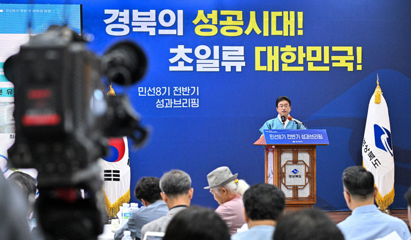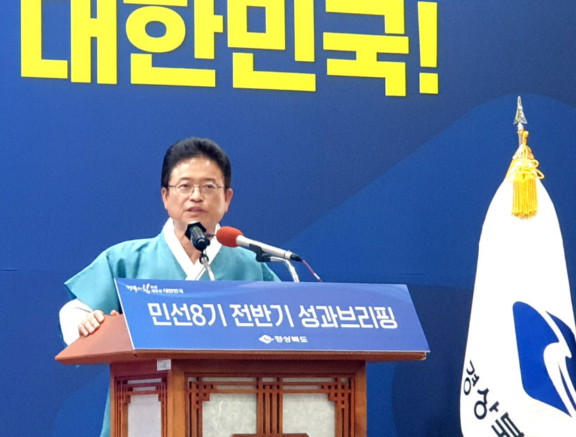| 이철우 경북도지사가 1일 경북도청에서 열린 민선 8기 전반기 성과 및 후반기 도정 방향에 대해 브리핑을 하고 있다, 경북도 제공 |