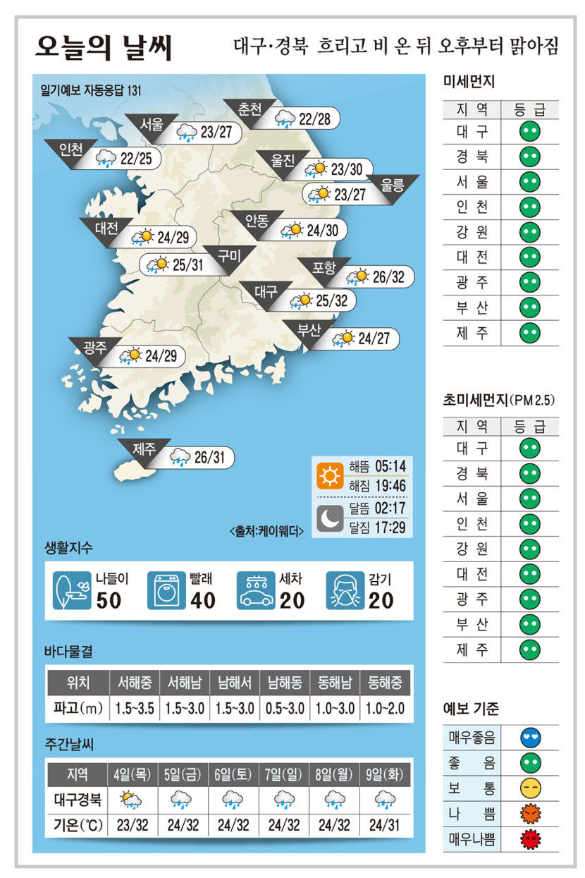 카카오톡 페이스북 트위터 전체 네이버밴드 네이버블로그 대구·경북 흐리고 비 온 뒤 오후부터 맑아짐 대구·경북 오늘의 날씨 (7월3일)…낮 최고기온 대구·포항 32, 구미 31, 안동 30도 사회부 기사 전체보기 영남일보(www.yeongnam.com), 무단전재 및 수집, 재배포금지 사회인기뉴스 [포토뉴스]설국으로 변한 팔공산대구지검 역대 첫 ‘女’ 검사장 탄생…제72대 신임 대구지검장 ‘정지영’