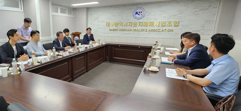 | 국토교통부는 4일 대구 북구 침산동에 있는 대구시자동차매매사업조합에서 침수차 불법유통 근절방안에 대해 논의했다. <대구시자동차매매사업조합 제공> |