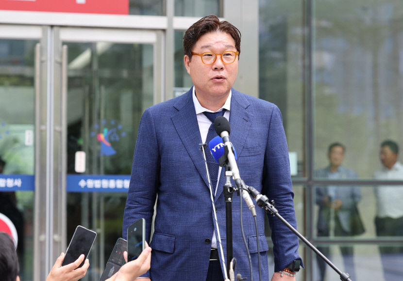 | 800만 달러 대북송금 혐의 등으로 기소돼 1심에서 징역 2년 6월의 실형과 징역 1년에 집행유예 2년을 각각 선고받은 김성태 쌍방울 그룹 전 회장이 12일 오후 수원지방법원을 나오며 기자들의 질문에 답하고 있다. 연합뉴스 |