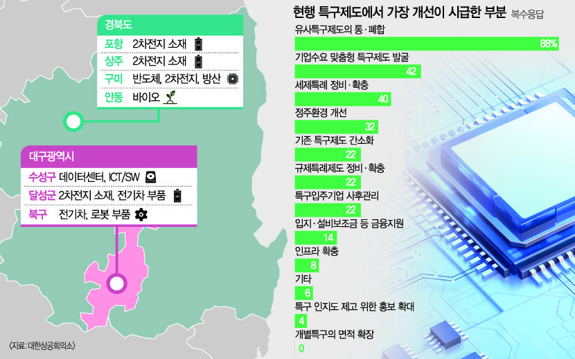대구의 한 기업인은 무분별한 특구 지정이 오히려 기업 활동을 저해시킨다고 꼬집었다. 그는 "특구마다 혜택이 조금씩 달라 장점이 있다. 하지만 과다한 선택지는 오히려 선택을 방해한다. 중복된 역할 부여, 부처마다 거쳐야 하는 복잡한 행정 절차탓에 효율성은 더 떨어진다. 특정 특구 구역이란 이유로 여러가지 혜택 수혜에 제약도 발생한다"고 지적했다.