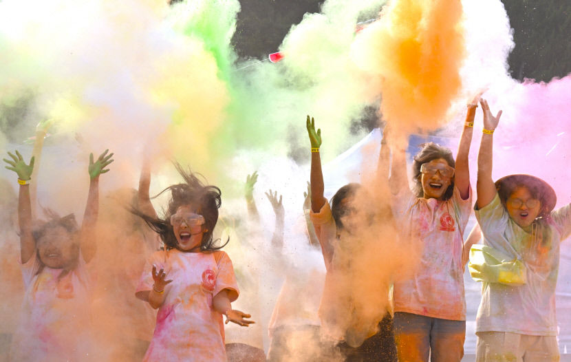 27일 대구 달서구 계명대학교에서 '외국인 유학생 상상 컬러벌 축제'가 열렸다. 축제를 찾은 외국인 유학생들이 흘러나오는 K-POP에 맞춰 컬러파우더를 뿌리며 즐거운시간을 보내고 있다.