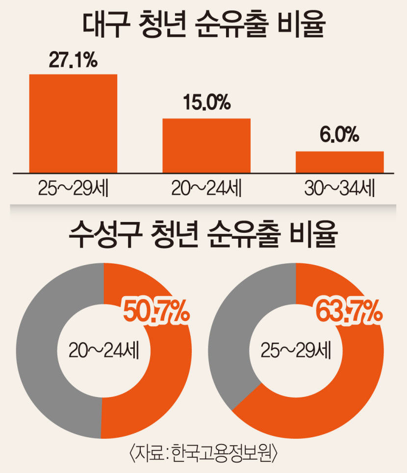 또 달서구·수성구의 청년 유출 인구는 전국 기초자치단체 최상위를 기록했다.