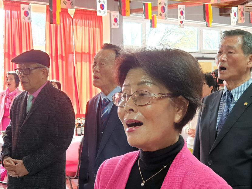 경북도가 마련한 '파독 근로 60+1 주년 기념 오찬' 행사에 참석한 100여명의 파독 광부와 간호사들은 제창되는 애국가에 누가 먼저랄 것도 없이 눈가에 눈물이 고였다. 작은 울음 소리도 들려왔다.