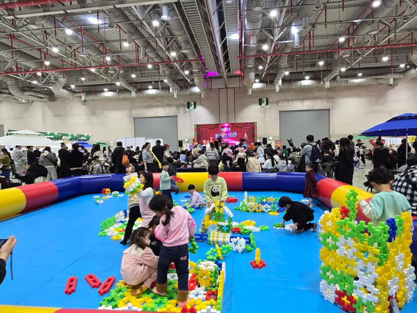 | 구미시 산동읍 구미코에서열린 '구미코 윈터스토리' 블럭 만들기에 참가한 아이들이 즐거운 시간을 보내고 있다.<구미코 제공> |