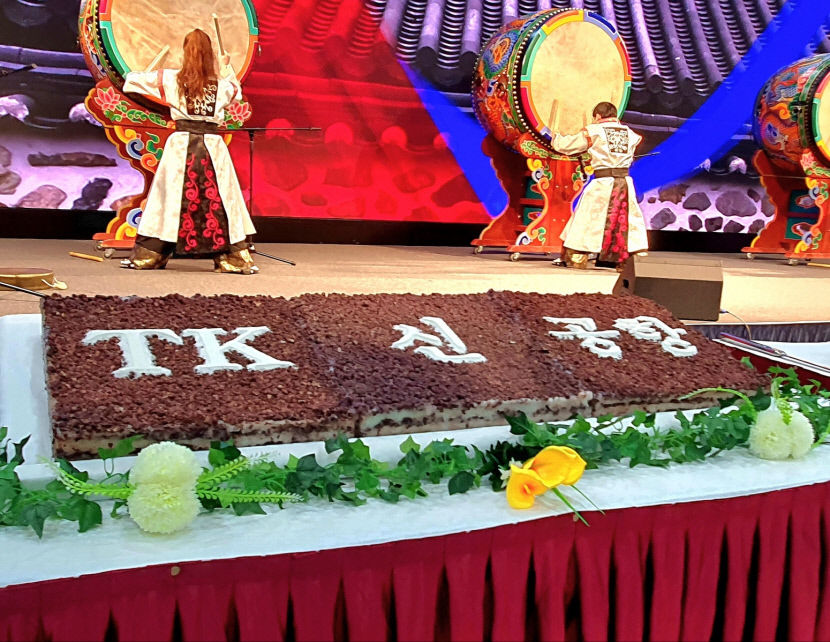케이크에는 'TK 신공항 '대구경북 통합' '선진대국시대' '대구 혁신' '미래 번영'이라는 문구가 적혀 있다.