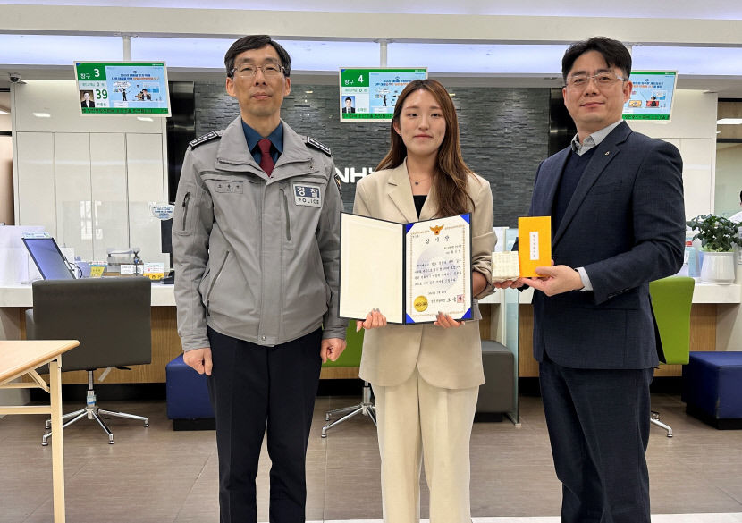 영천경찰서는 22일 전화금융사기(보이스피싱) 피해를 막고 범죄예방에 도움을 준 NH농협은행 영천 중앙지점 직원에게 감사장 및 보상금과 기념품 등을 전달했다. 농협직원 A씨는 지난 16일 'NH농협은행 영천 중앙지점'을 방문한 B씨가 보험을 해약하려는 것을 보고 금융사기를 의심 B씨를 설득하면서 경찰에 신고 6천만원 상당의 피해를 막았다. 유시용기자 ysy@yeongnam.com