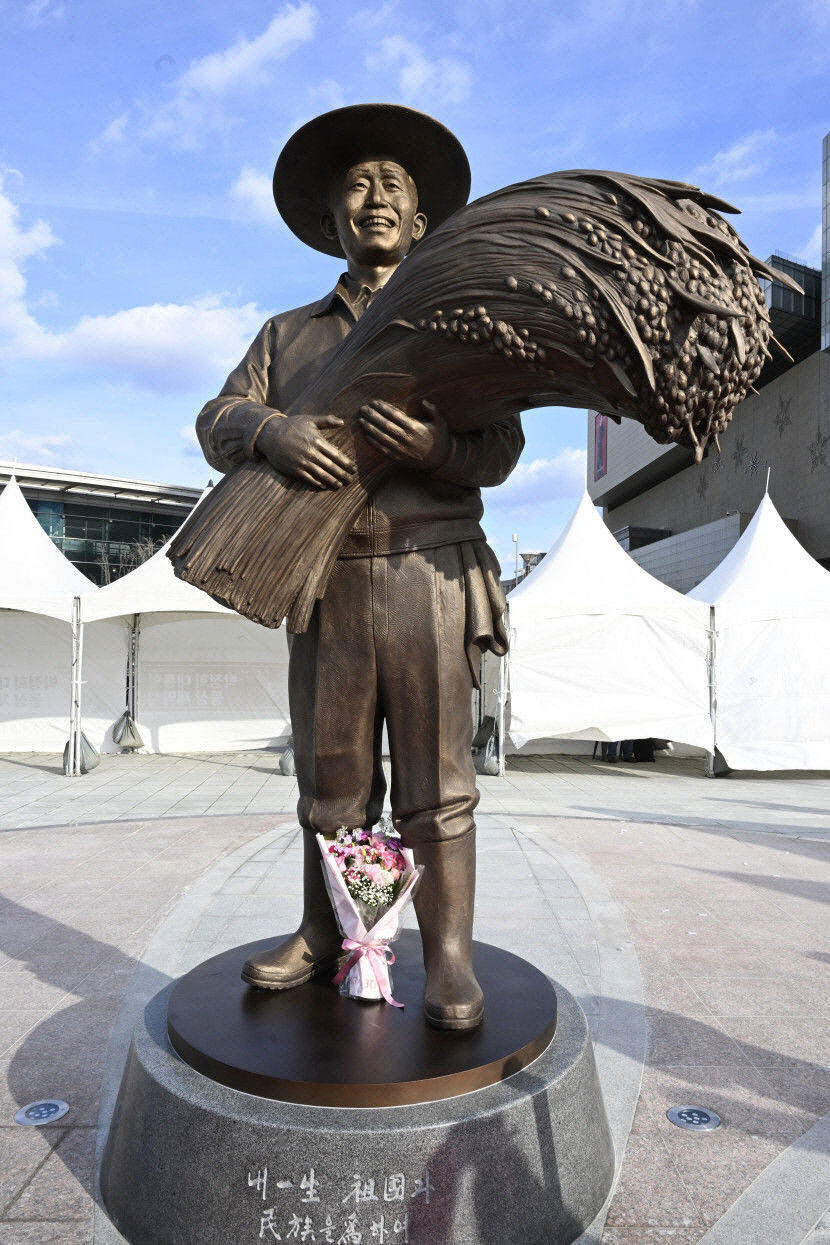 대구대표도서관 앞의 박정희 동상은 높이 6m, 제작비는 7억원이 투입될 예정이었다.