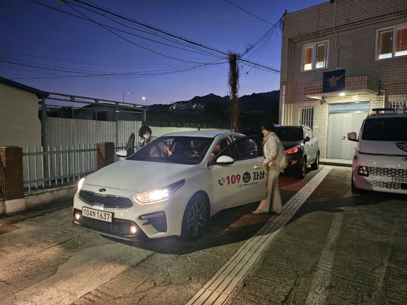 | 늦은 밤 구미시 광평동 구미 정신응급 합동대응센터 직원들이 지역주민의 요청을 받고, 긴급 출동을 하고 있다. <구미시 제공> |