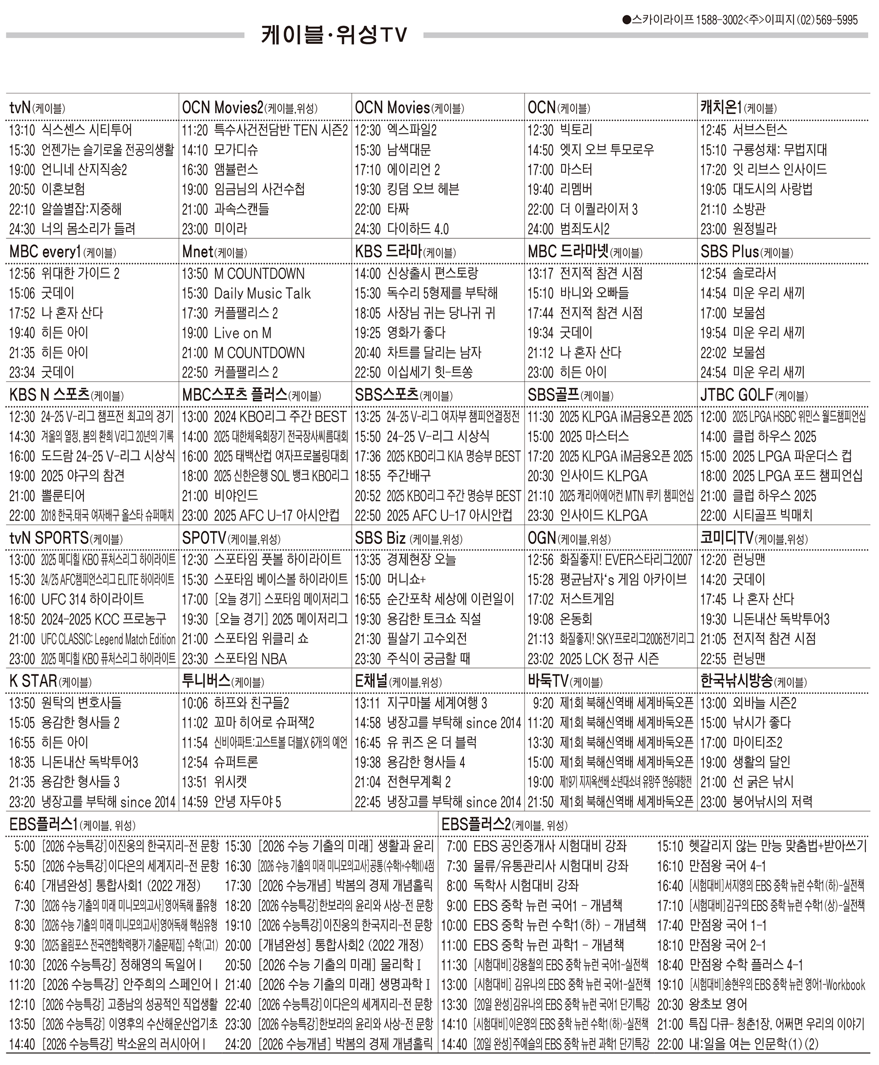 카카오톡 페이스북 트위터 전체 네이버밴드 네이버블로그 4월14일(월) 케이블·위성TV 편성표 박성희 기사 전체보기 영남일보(www.yeongnam.com), 무단전재 및 수집, 재배포금지 연예인기뉴스