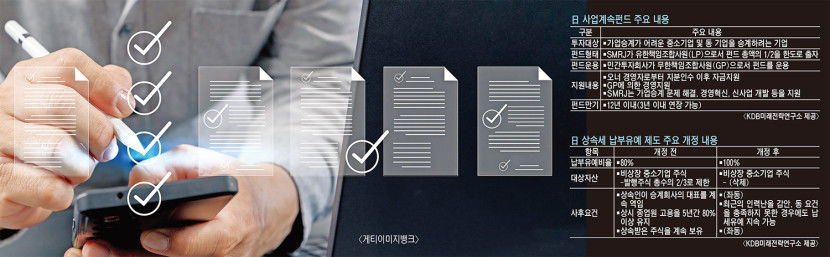 가장 눈에 띄는 것은 업계 의견과 전문가 논의 등 현장의 목소리와 주요국 사례를 검토해 종합적인 M&A 지원체계를 갖춘 가칭 '기업승계특별법' 제정이다.