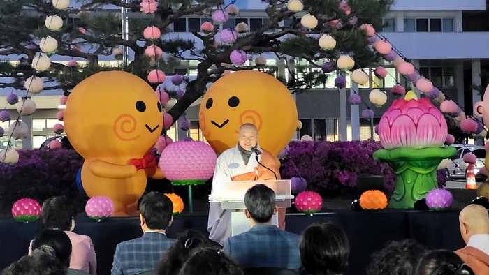 월담 스님은 봉축사를 통해 “부처님께서 보리수 아래에서 일어나 법의 등불을 켠 것은 개인의 안락보다는 대중의 안락이 더 귀중함을 알리기 위함"이라며 “삶이 힘들고 혼란할 때마다 일심으로 기도하고 어려움을 함께 이겨낸 우리 공동체 구성원은 화합이라는 등불을 밝혀야 할 때다. 화합은 우리의 불필요한 괴로움에서 벗어나게 편안함을 만드는 출발점이자 종착점"이라고 말했다.