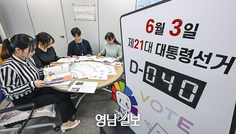 제21대 대통령 선거를 40일 앞둔 24일, 대구시선거관리위원회 사무실에서 직원들이 투표관리 매뉴얼 등 선거에 맞춰 제작된 책자를 숙독하고 있다. 이현덕기자 lhd@yeongnam.com